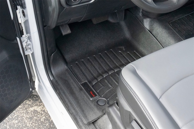 The WeatherTech FloorLiner DigitalFit accurately and completely lines the interior carpet giving absolute interior protection. Digital laser measurements of interior surfaces offer a consistently perfect fit. A HighDensity TriExtruded (HDTE) material allows for a rigid core for strength while offering surface friction to the carpet, as well as tactile feel to the surface. Advanced surfacing creates channels that carry fluids and debris to a lower reservoir with further channeling to help minimize fluid movement while driving. Once fluids become trapped in the reservoir, away from shoes and clothing, they are easily removed from the WeatherTech FloorLiner DigitalFit over the door sill. No muss-no fuss.