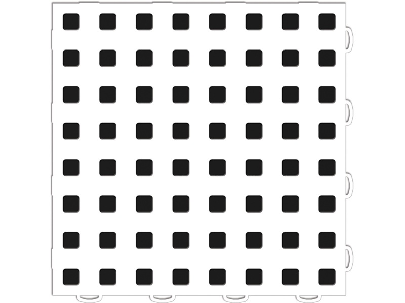 TechFloorTM tiles are custom engineered utilizing a loop and tab attaching system to tightly lock tiles together and create a seamless look. Each tile has 2 connecting edges with loops, and 2 connecting edges with tabs. They quickly attach to each other by laying the tab of one tile over the loop of the next, and snapping them down into place.