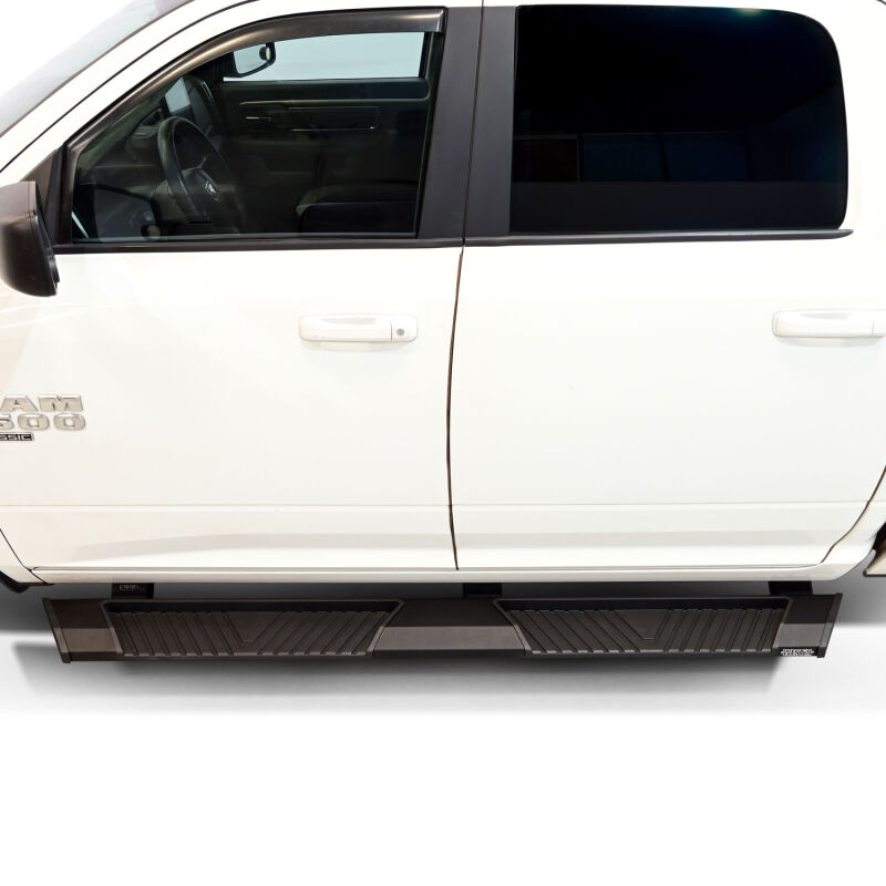 AT6 Running Boards are designed for full size trucks and feature a 5-inch wide step area with integrated indented pads for solid footing. Built with clean, rounded end caps and bracket covers for an OEM?style appearance, they offer a refined yet rugged look. Two finish options are available, textured black powder-coated extruded aluminum, backed by a 3?year limited warranty, or bright finish polished stainless steel with a limited lifetime warranty. These boards are lightweight but structurally durable, designed to minimize added weight with the strength for the toughest jobs. The footboard and pads are ergonomically placed for comfort and maximum traction. Bracket covers are used to conceal mounting hardware and help preserve that clean factory look. The AT6 models are vehicle-specific fit and include hardware to bolt on the boards with no drilling required. Installation takes about 1.5hrs, and depending on the height of the truck, should not require a lift. The aluminum construction offers excellent weather resistance with proper care and maintenance, but for harsh road conditions or regions where salt is used on the roadways during winter, choose stainless steel. Replace your factory running boards with AT6. They are a sleek, solidly built option with stylish design, ample stepping area, and finish choices for a custom look.