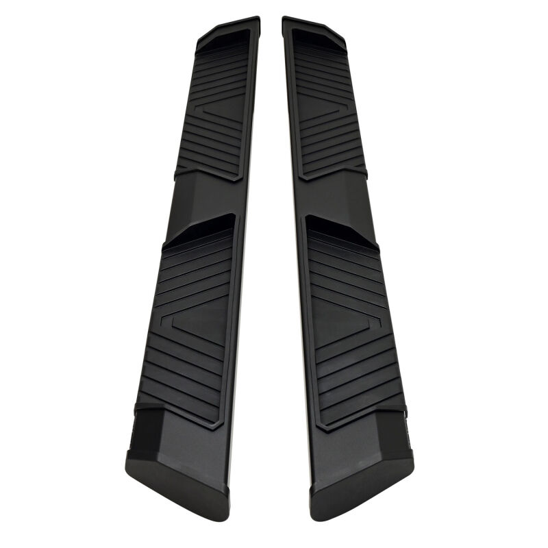 AT6 Running Boards are designed for full size trucks and feature a 5-inch wide step area with integrated indented pads for solid footing. Built with clean, rounded end caps and bracket covers for an OEM?style appearance, they offer a refined yet rugged look. Two finish options are available, textured black powder-coated extruded aluminum, backed by a 3?year limited warranty, or bright finish polished stainless steel with a limited lifetime warranty. These boards are lightweight but structurally durable, designed to minimize added weight with the strength for the toughest jobs. The footboard and pads are ergonomically placed for comfort and maximum traction. Bracket covers are used to conceal mounting hardware and help preserve that clean factory look. The AT6 models are vehicle-specific fit and include hardware to bolt on the boards with no drilling required. Installation takes about 1.5hrs, and depending on the height of the truck, should not require a lift. The aluminum construction offers excellent weather resistance with proper care and maintenance, but for harsh road conditions or regions where salt is used on the roadways during winter, choose stainless steel. Replace your factory running boards with AT6. They are a sleek, solidly built option with stylish design, ample stepping area, and finish choices for a custom look.