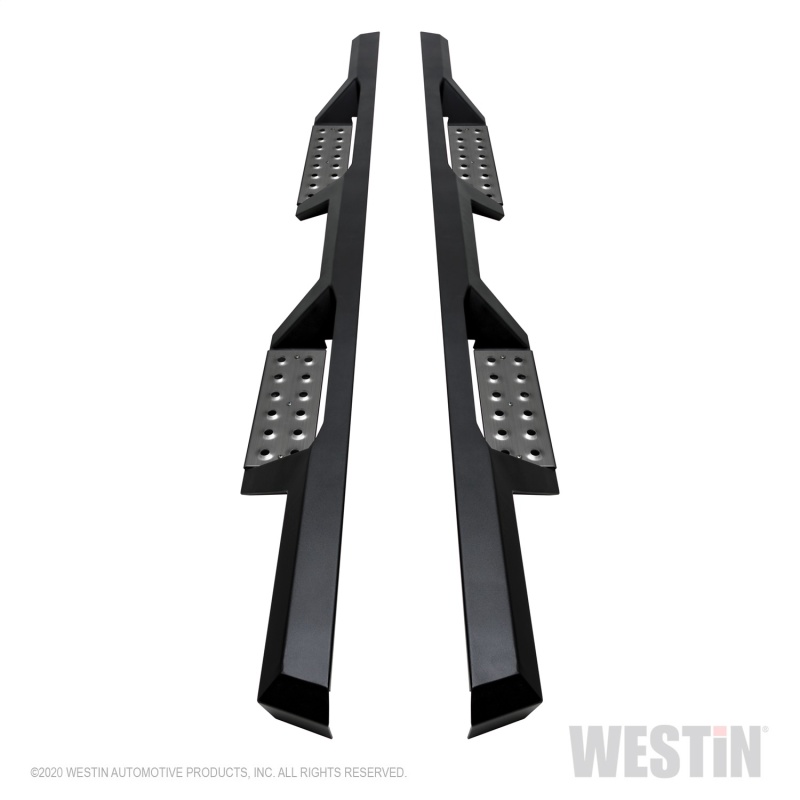 Westin's HDX Stainless Drop Nerf Step Bars are built with corrosion-resistant, textured black painted stainless steel designed to last under the toughest of conditions. With 1-piece construction, these nerf step bars provide over 2 added inches of toe/heel step area than our competitors and fit tight to the vehicle's rocker panel for a solid fit and rugged look. HDX Stainless Drop Nerf Step Bars include stainless steel step pads. Step plates are rust resistant and provide maximum traction. Bolt-on installation with no drilling is required. Includes mount kit.